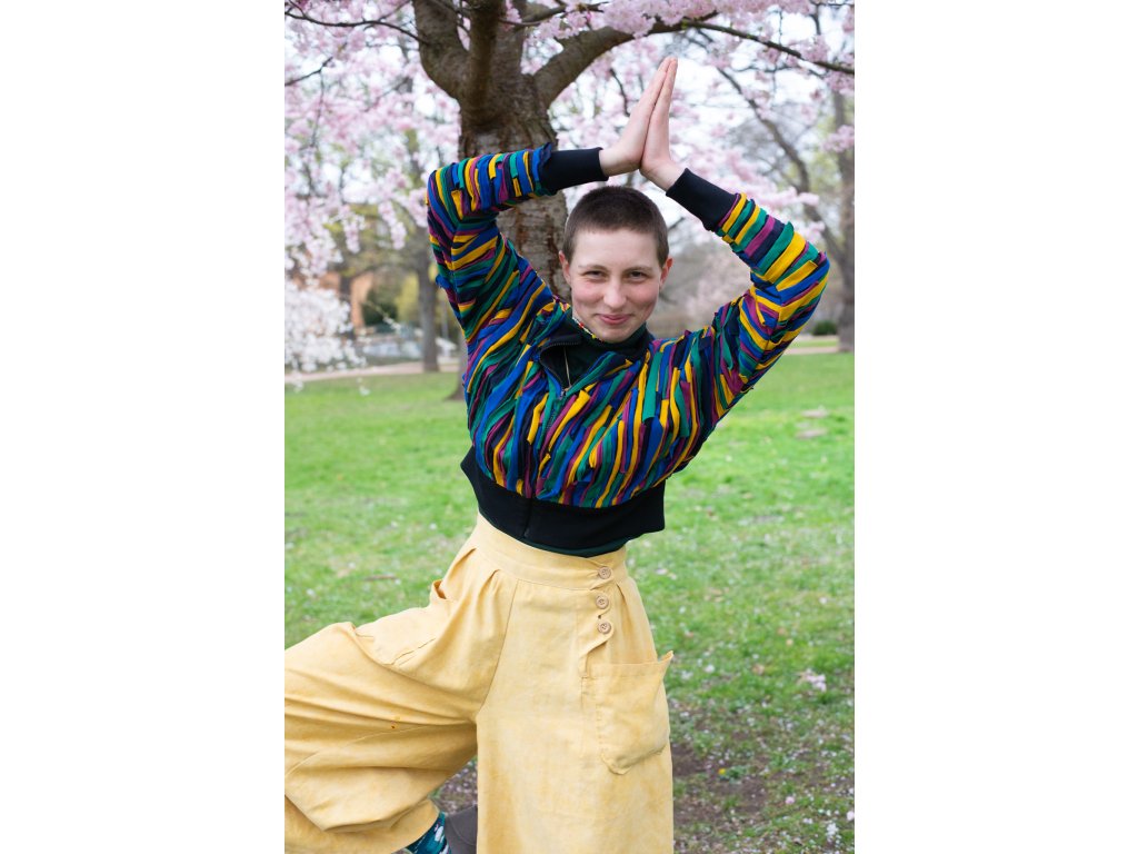 Základ bundy je lehký, ale našitím pruhů vznikla prostorová struktura, která bundu tvoří pevnou a objemnější.