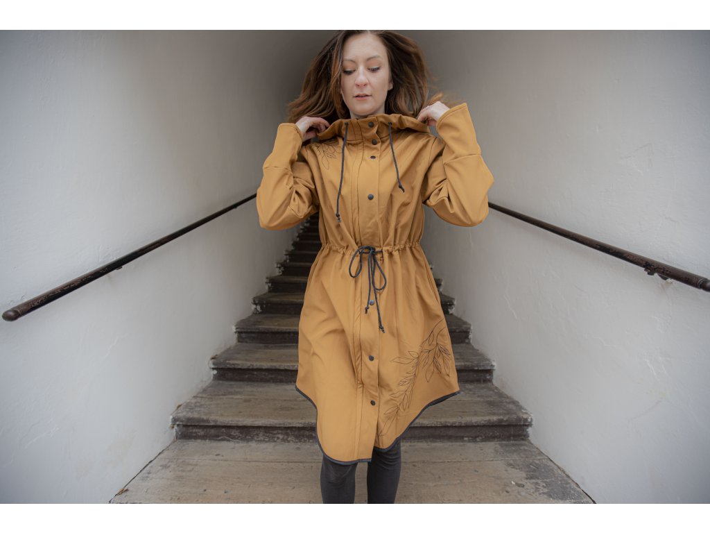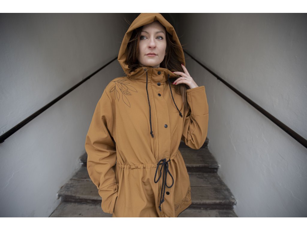 Kabát je kombinací elegance díky střihu, který zdůrazňuje ženskost a praktičnosti skrze vlastnosti softshellu - nepromokavý.
