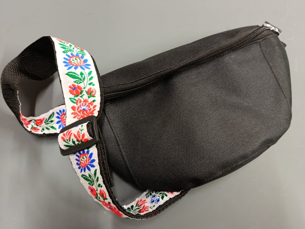 Ledvinka je velmi praktická věc, která se hodí k muzice, do města, na procházku. Komfortně se do ní vejdou základní věci jako peněženka, mobil, klíče a pár dalších drobností. Rozměry jsou přibližně 28*17cm. Délka popruhu je nastavitelná, celkové rozpění popruhu včetně ledvinky (obvod) je 80-115cm. Na přání je možný ušít popruh delší.