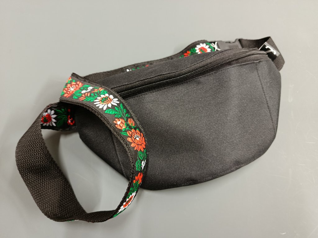 Ledvinky ideální k muzice i na tancovačku. Jsou ušité z pevného nepromokavého materiálu (kortexin), zapínají se na zip. Popruh je zdobený krojovou stuhou a je nastavitelný. Uvnitř vás překvapí folklorní podšívka a malá kapsička