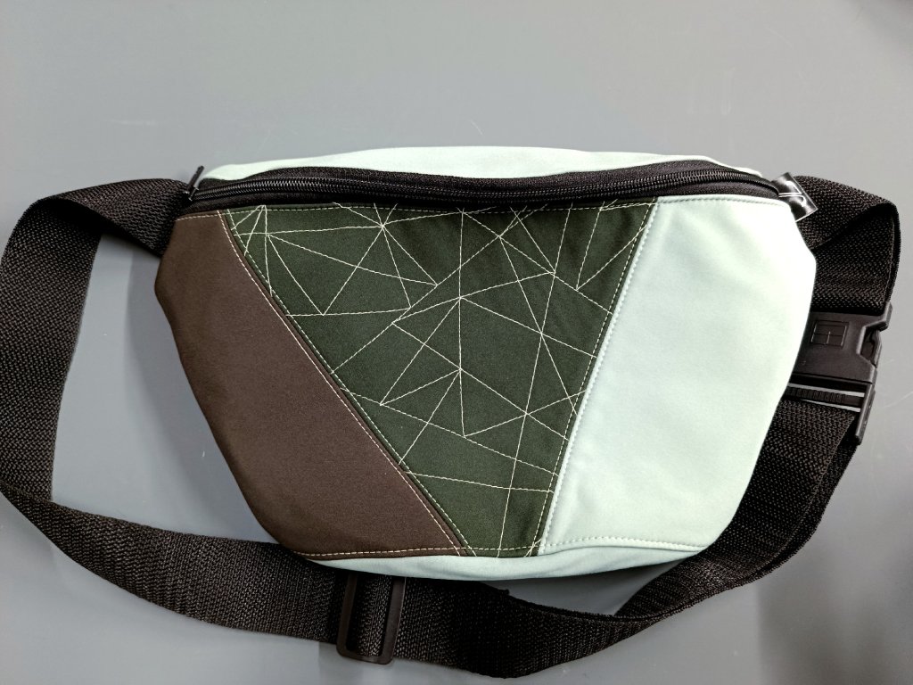 Ledvinka ušitá ze softshellu. Je nepromokavá, objemná. Uvnitř má bavlněnou podšívku a malou kapsičku. Ze zadní strany má druhou velkou kapsu na zip. Má nastavitelný popruh a je zdobená autorskou výšivkou.