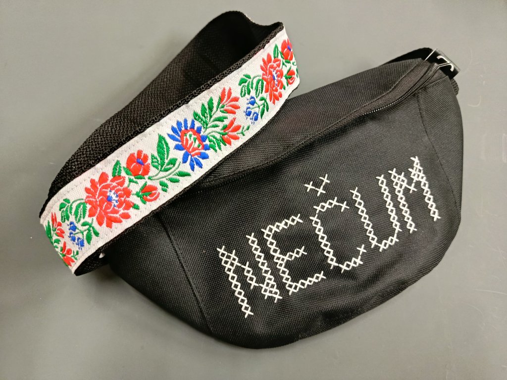 Ledvinky ideální k muzice i na tancovačku. Jsou ušité z pevného nepromokavého materiálu (kortexin), zapínají se na zip. Mají ručně křížkovým stehem vyšívané texty. Popruh je zdobený krojovou stuhou a je nastavitelný. Uvnitř vás překvapí folklorní podšívka a malá kapsička