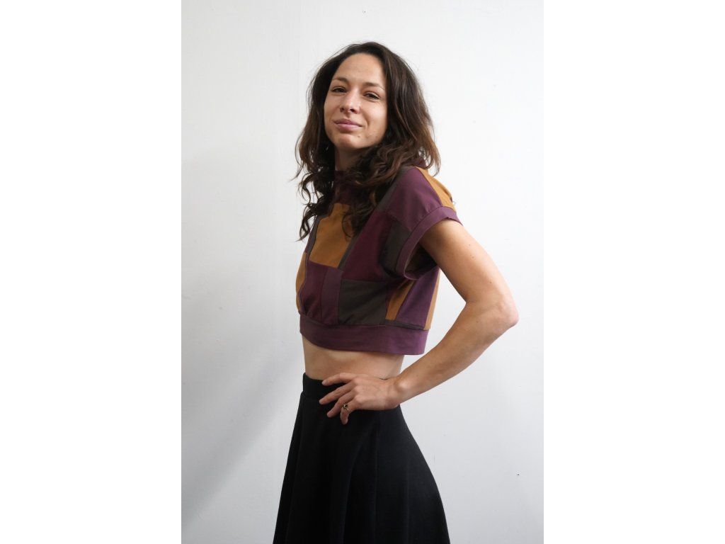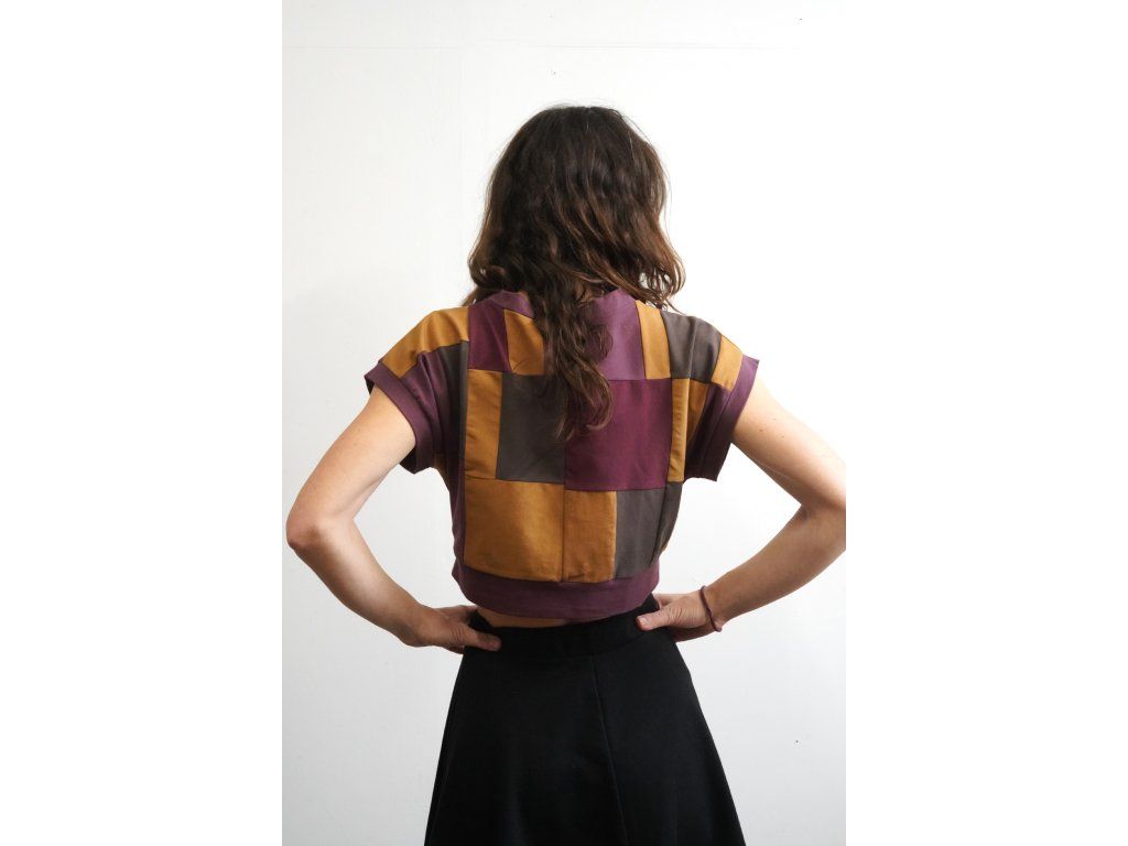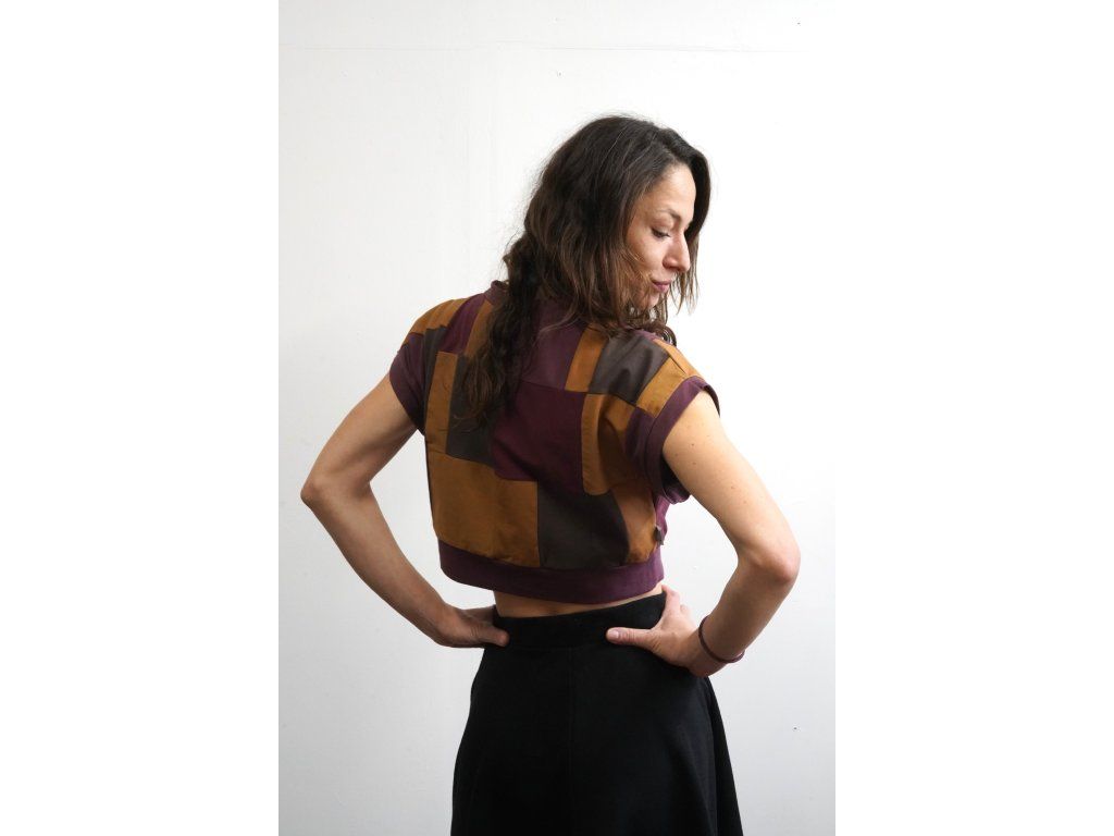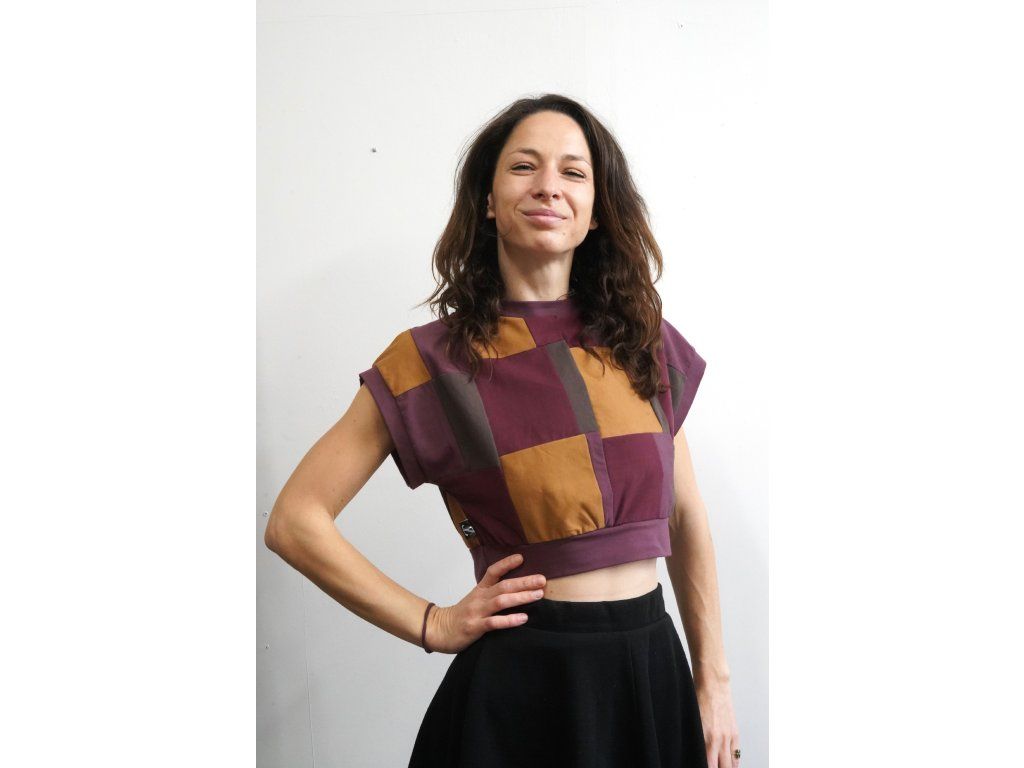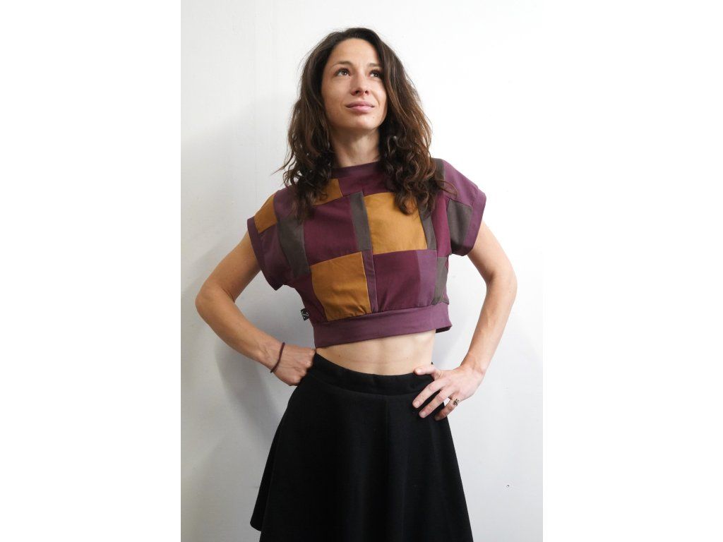 Toto tričko vzniklo ze zbytků látek z oděvní výroby - tudíž se jedná o originální kus. Triko má přinechané rukávy a svou délkou je krátké - crop. Je ušito z bavlněný úpletů s příměsí elastanu - je příjemné na dotek a vhodné pro letní období. Triko můžete nosit k sukni, kalhotám, nebo na šatech.